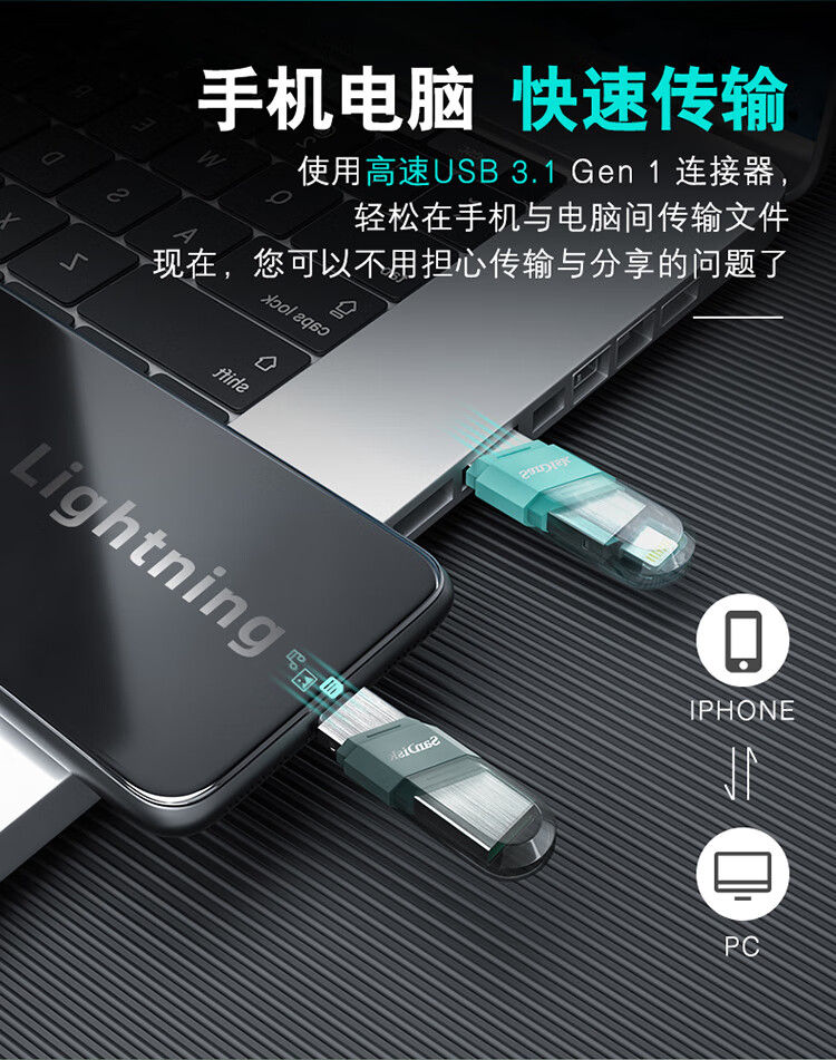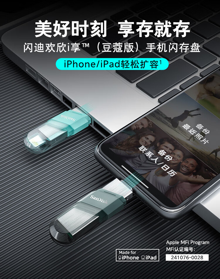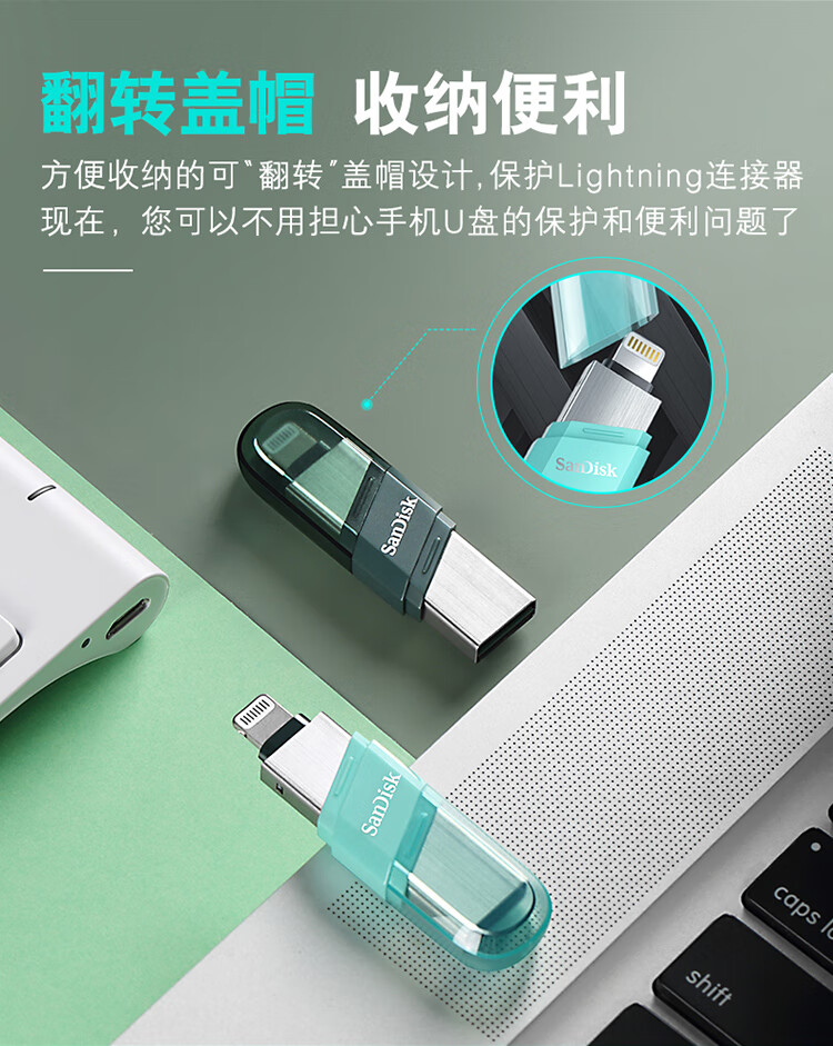 闪迪 手机电脑两用U盘 绿色 256GB 豆蔻版 1个