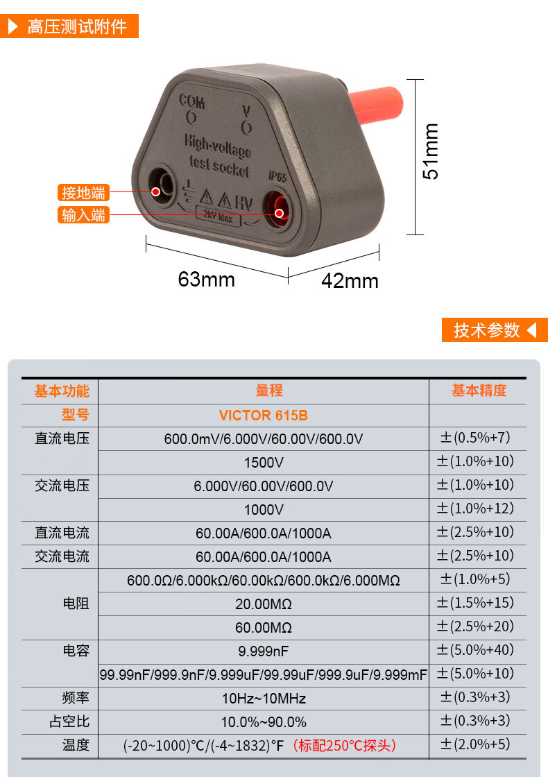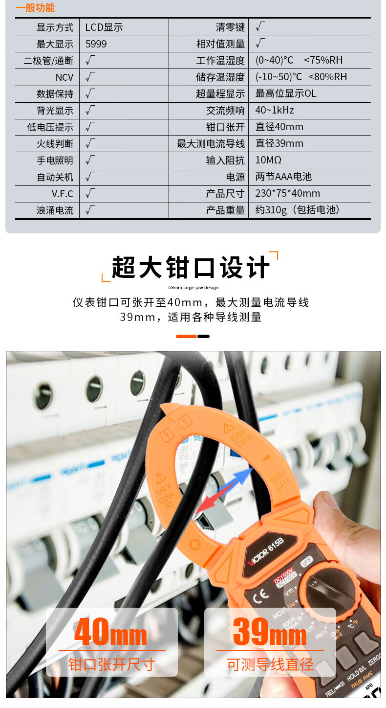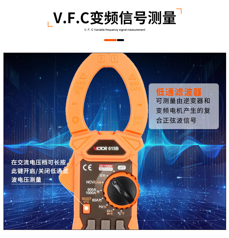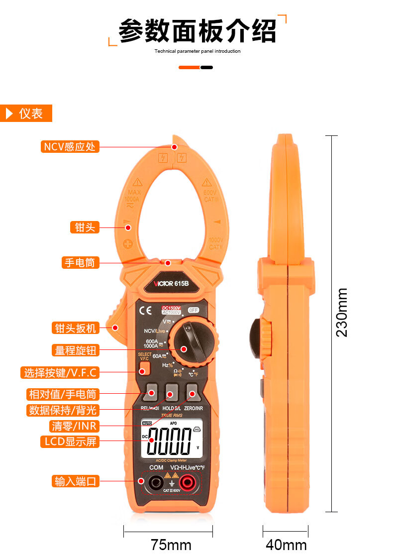 胜利仪器 数字高精度钳形万用表 VC615B 1个