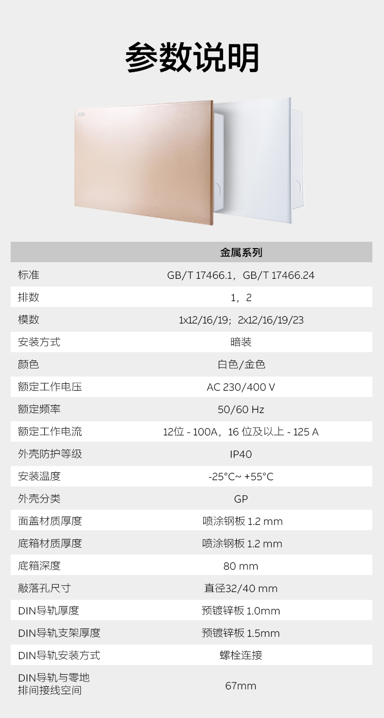 ABB 配电箱金属面盖 YU-FM-2-16 32回路 白色 1个