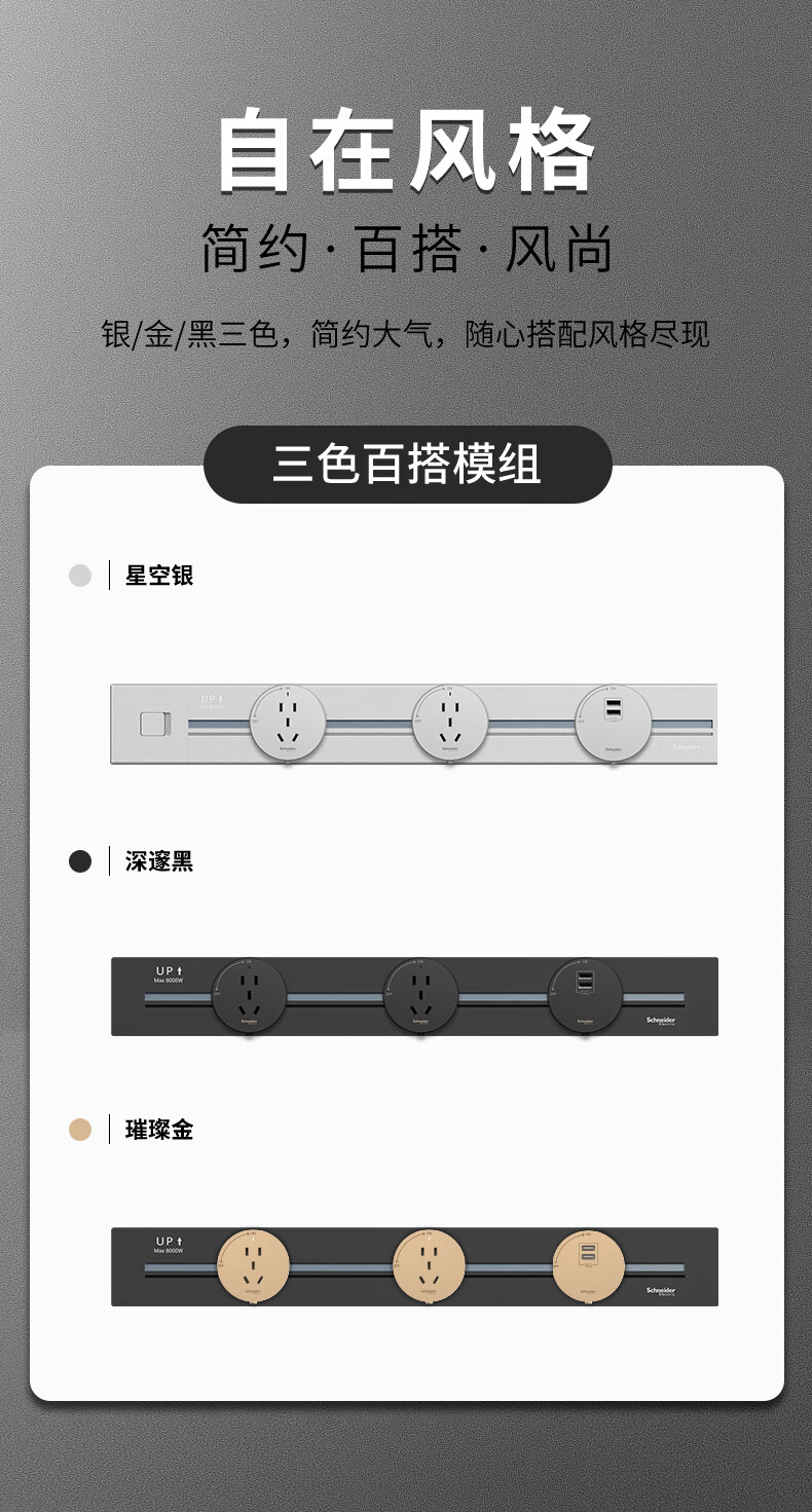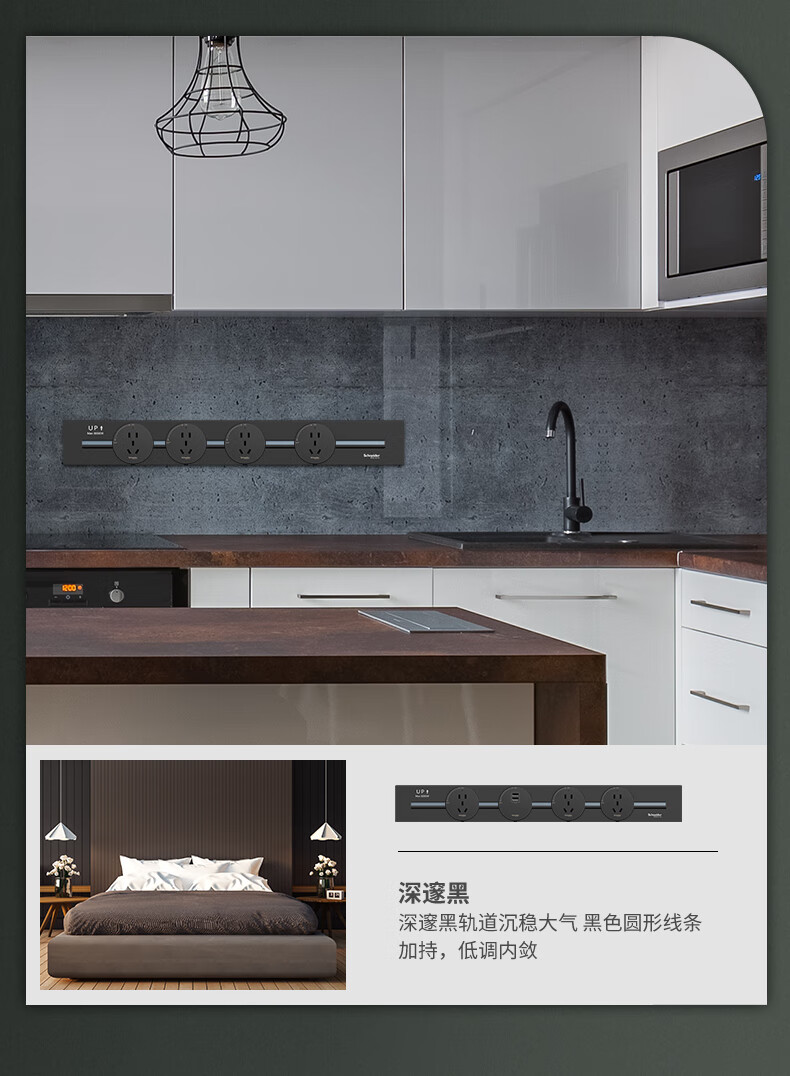 施耐德电气 壁挂式滑轨插座 深邃黑 明装 100cm轨道 1组