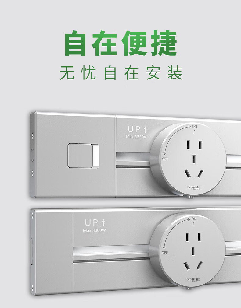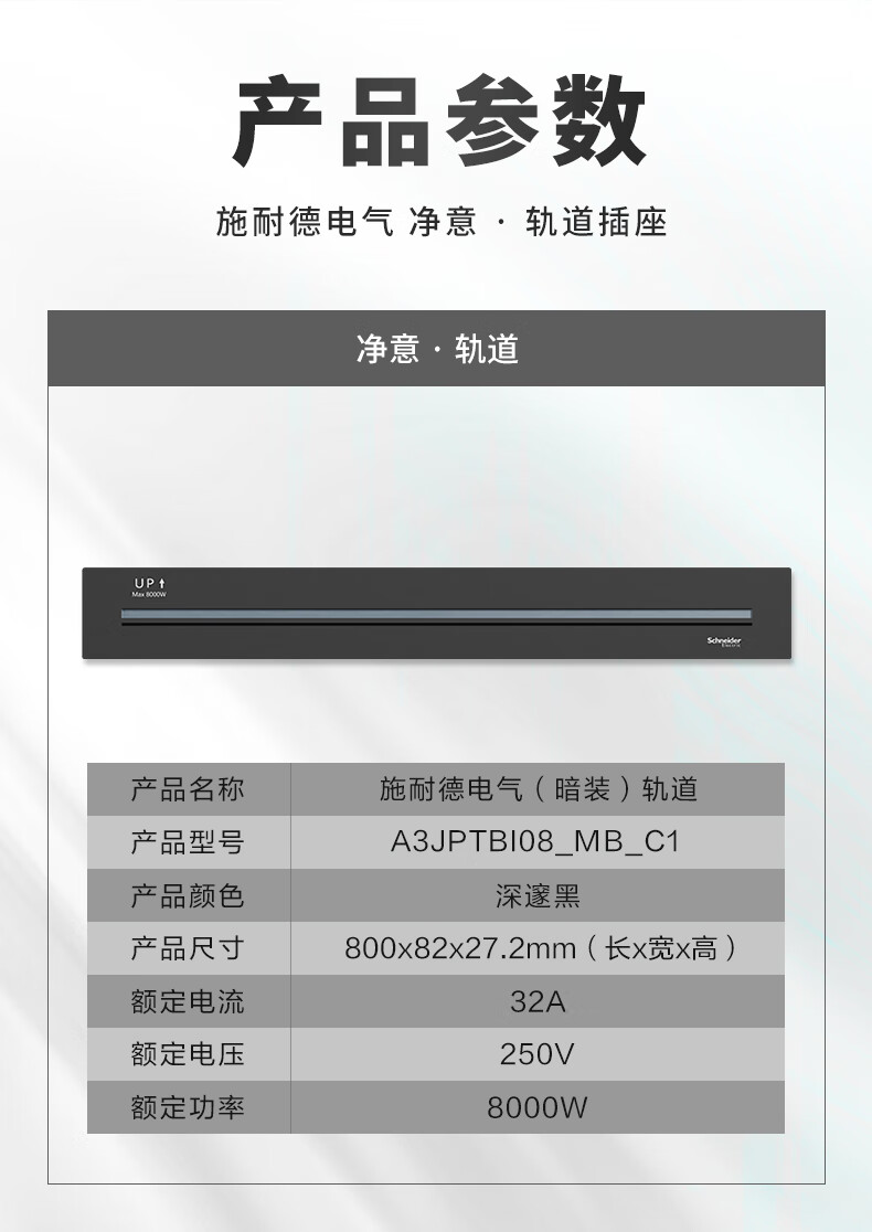 施耐德电气 壁挂式滑轨插座 深邃黑 暗装 80cm轨道 1组
