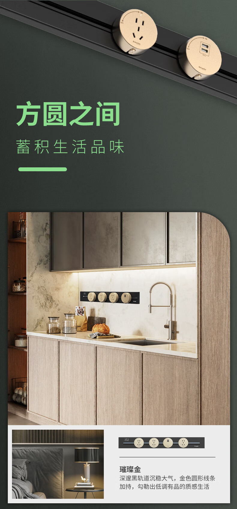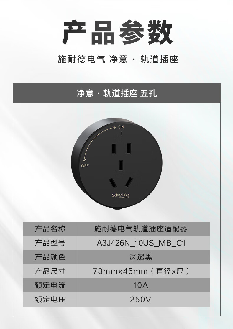 施耐德电气 壁挂式滑轨插座适配器 深邃黑 五孔 1组