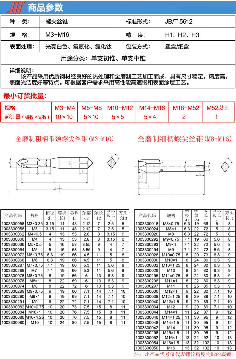 螺尖丝锥M10H2