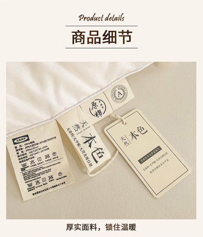 三极户外 纯棉大豆纤维被 TP2882 白色 150*200cm/4斤 1件