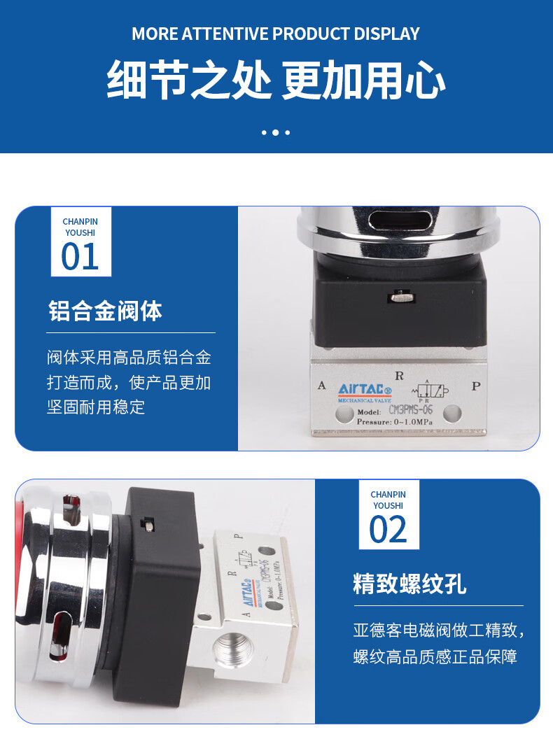 亚德客 CM3系列机械阀 CM3PM08B 蘑菇头按钮型 黑色 1个