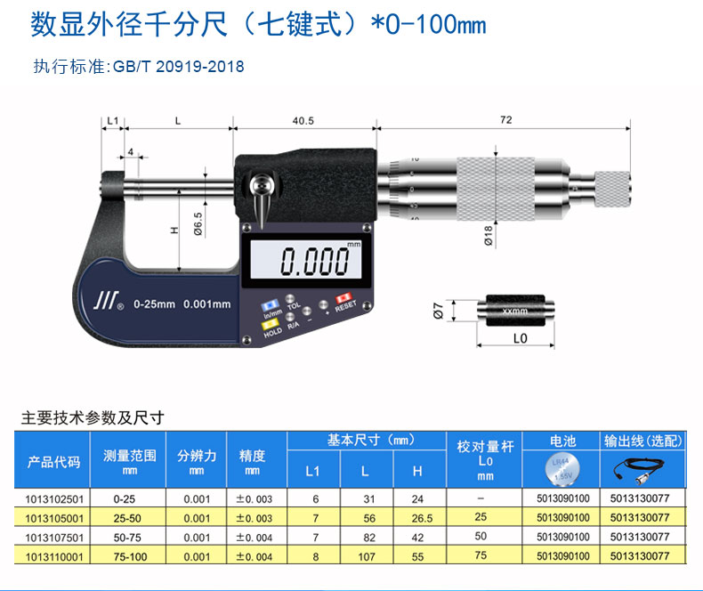 数显千分尺50-75mm 7键