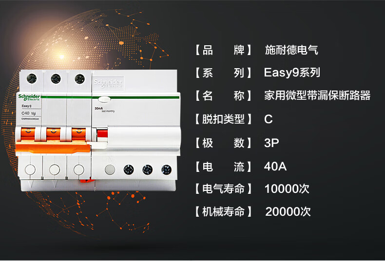 施耐德电气 漏电保护断路器 EA9RN3C4030CA 3P 40A 1个