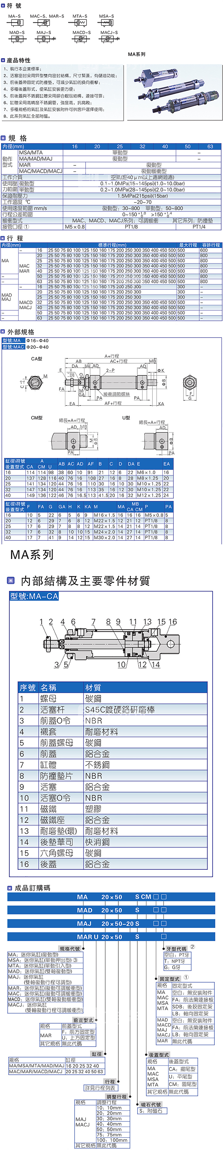 亚德客 MA系列不锈钢迷你气缸(复动型) MA32X300SCA 1个