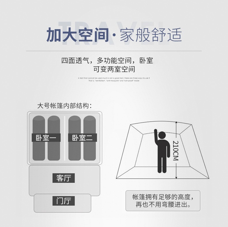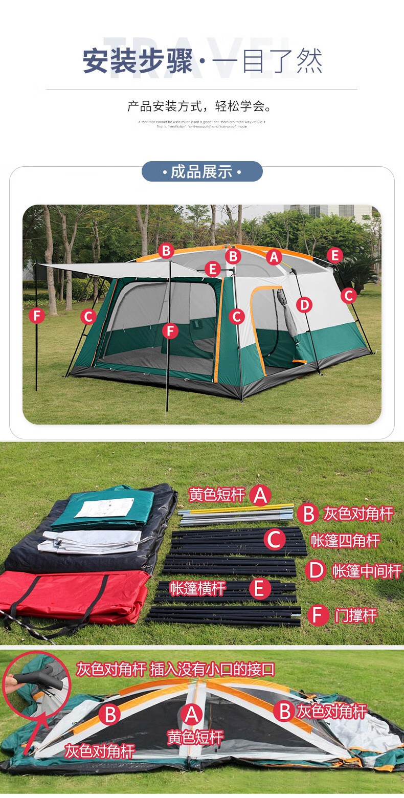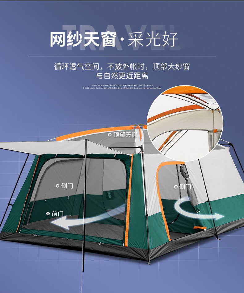 三极户外 双层大帐篷 TP2640 黄色 310*210*185cm 1顶