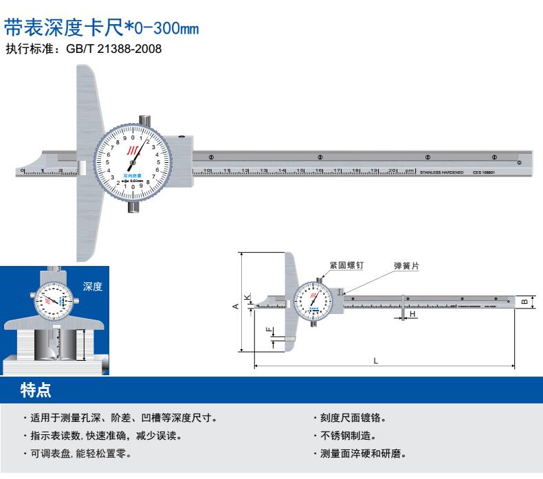 成量 带表深度游标卡尺 1012103022 0-300mm 0.02 1把