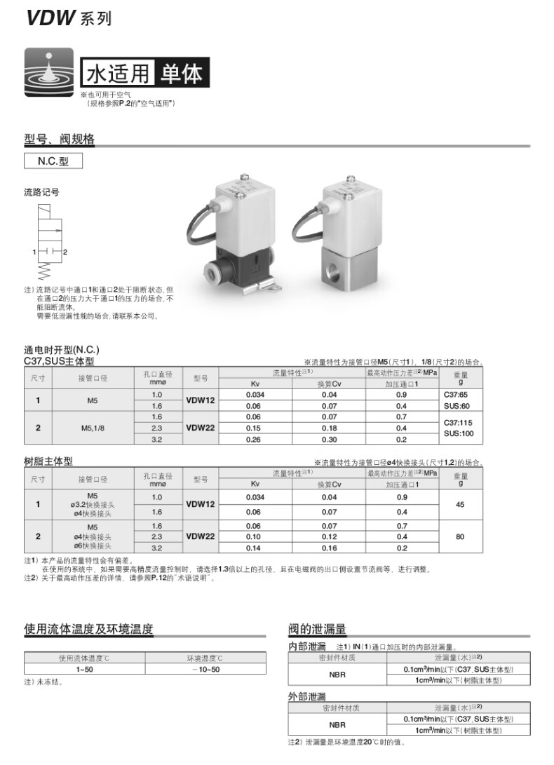 SMC VDW系列小型直动式2通电磁阀 VDW12BA 水用单体 1个