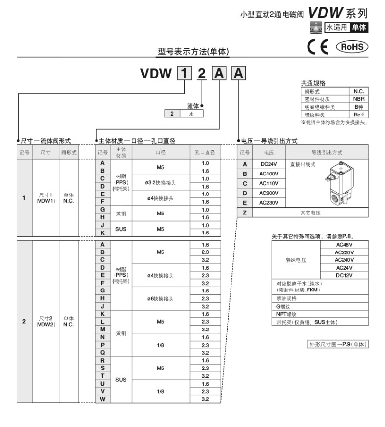 • 商品名称:SMC VDW系列小型直动式2通电磁阀