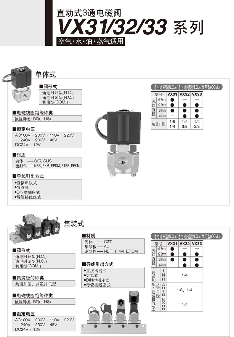 SMC VX31系列直动式3通电磁阀 VX3110GZ-01-5G1 1个