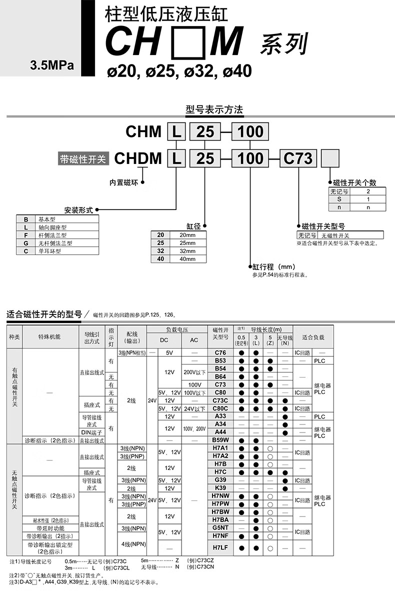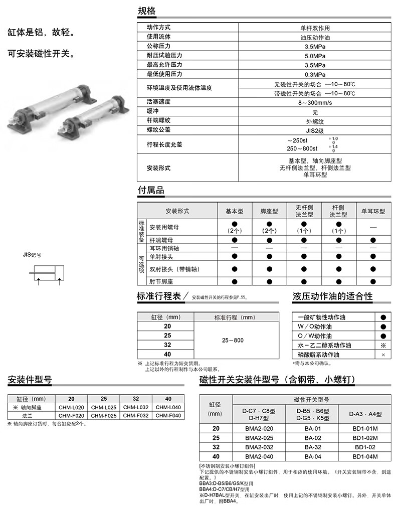 SMC CHM系列柱形液压缸 CHDMB25-125 1个