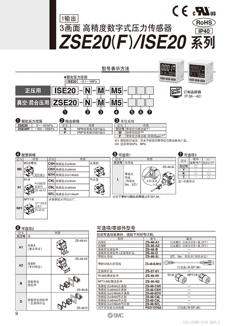 • 商品名称:SMC ISE20系列3画面 高精度数字式压力开关 正压用