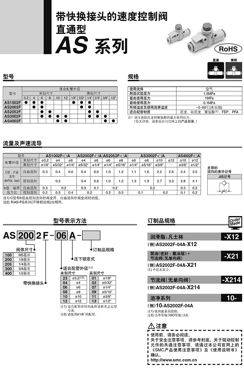 SMC AS系列速度控制阀 AS2052F-08A 带快换接头 直通型 1个
