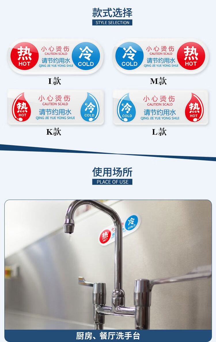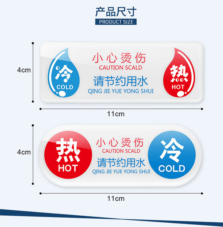 赫思迪格 亚克力冷热水标识贴 JG-1559 M款冷热帖(11×4cm) 1个