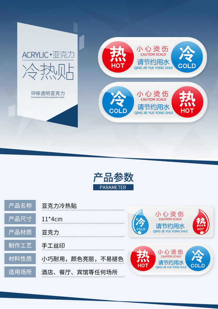 赫思迪格 亚克力冷热水标识贴 JG-1559 I款冷热帖 1个