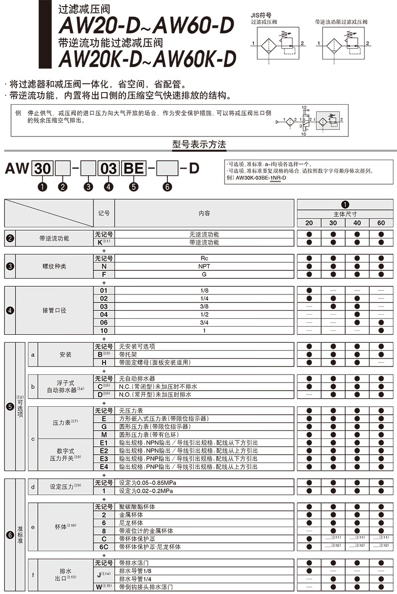 SMC AW-D系列模块式过滤减压阀 AW30K-03BC-D 1个
