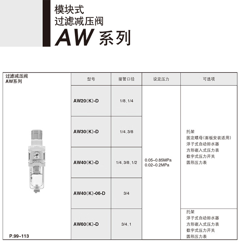 SMC AW-D系列过滤减压阀 AW20-02B-2-D 1个