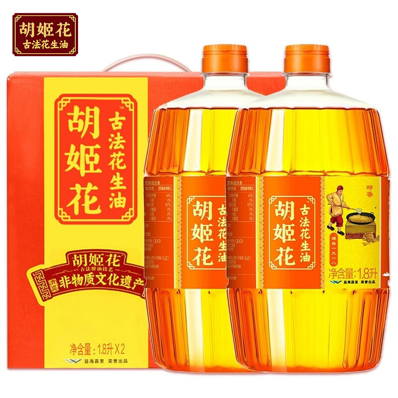胡姬花 古法压榨花生油 古法花生油1.8L*2 2个 1件
