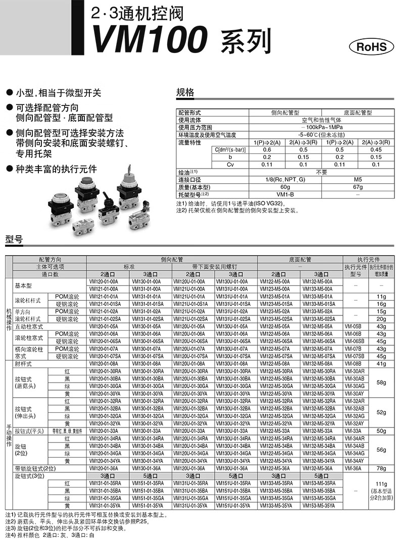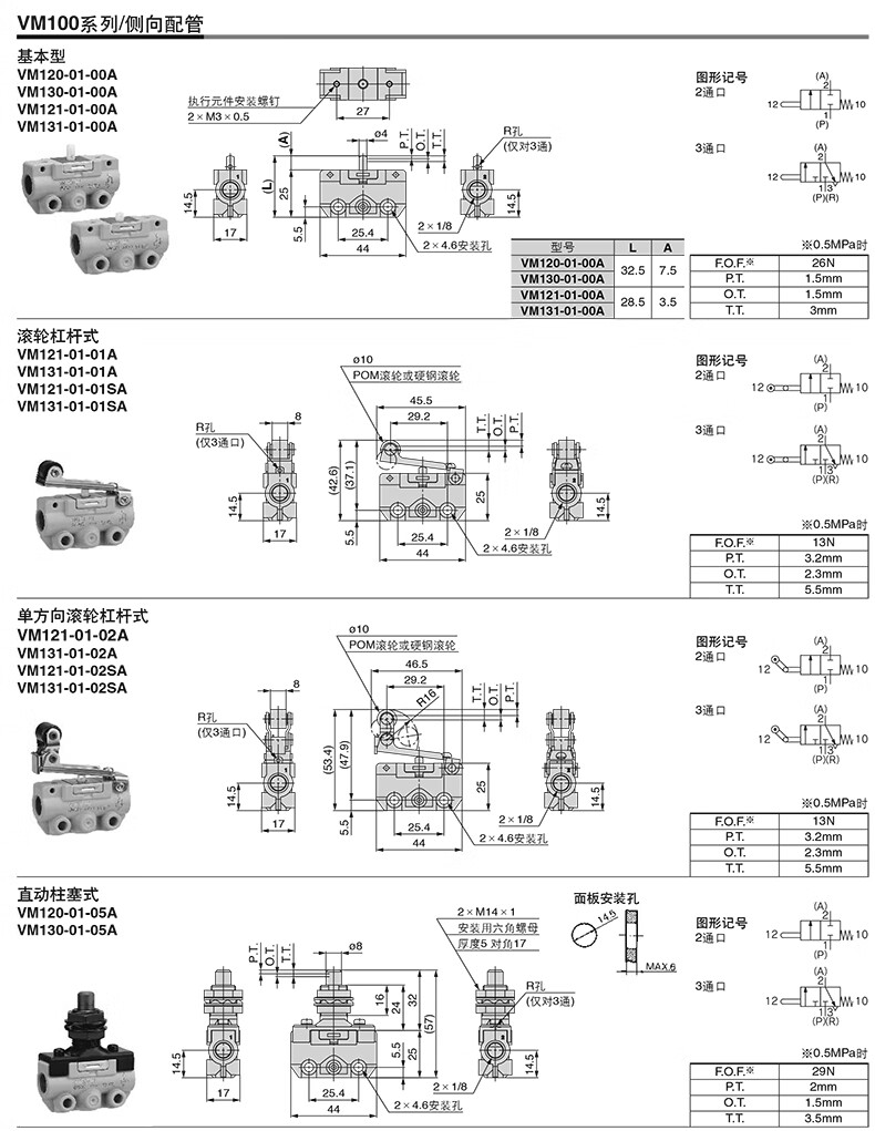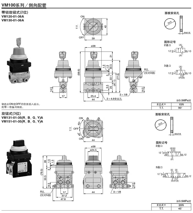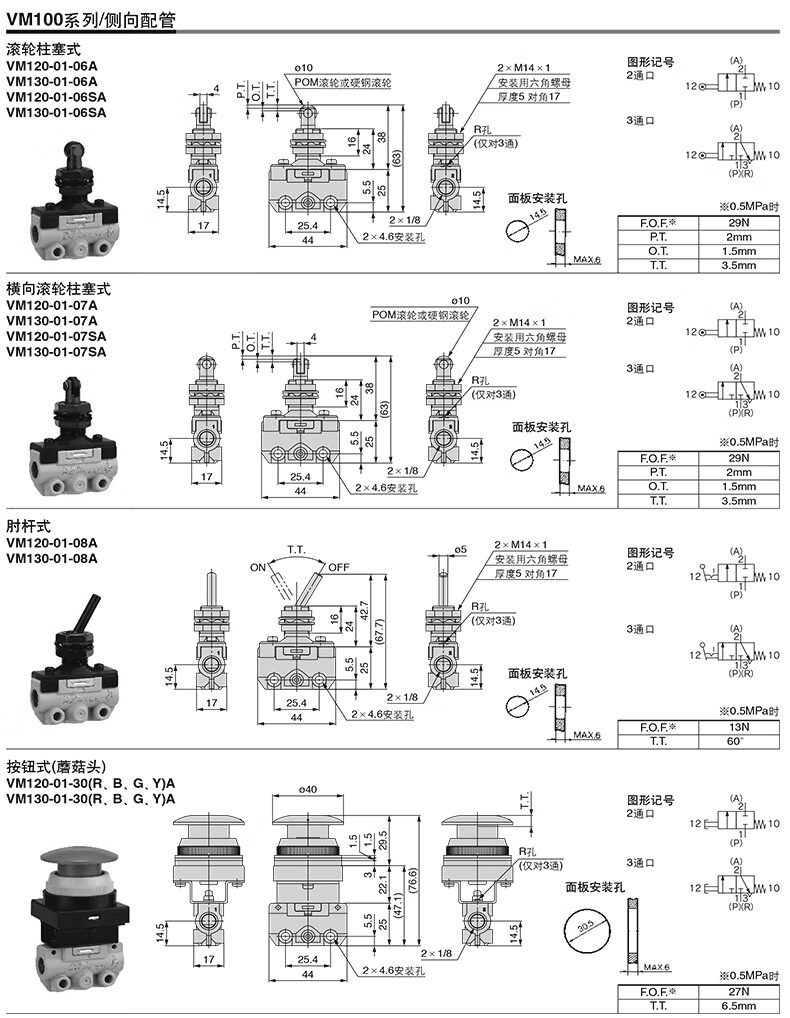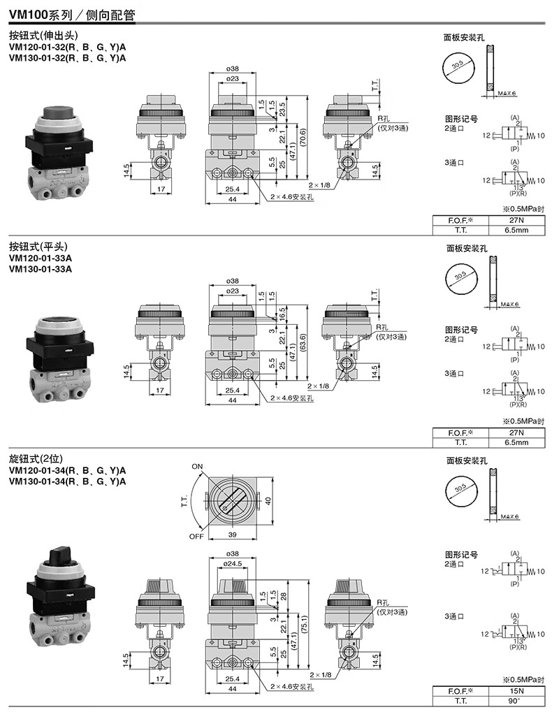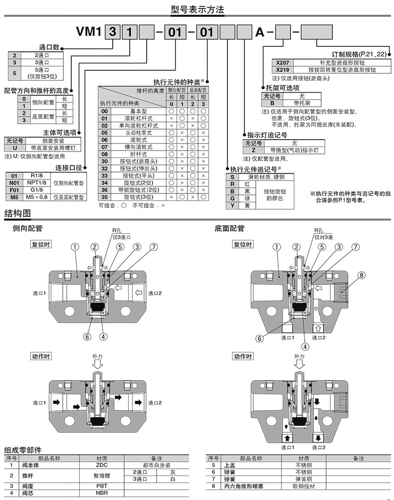 SMC VM130-X31A系列3通机控阀 操作台用的大按钮型 VM130-01-30GA-X31 1个