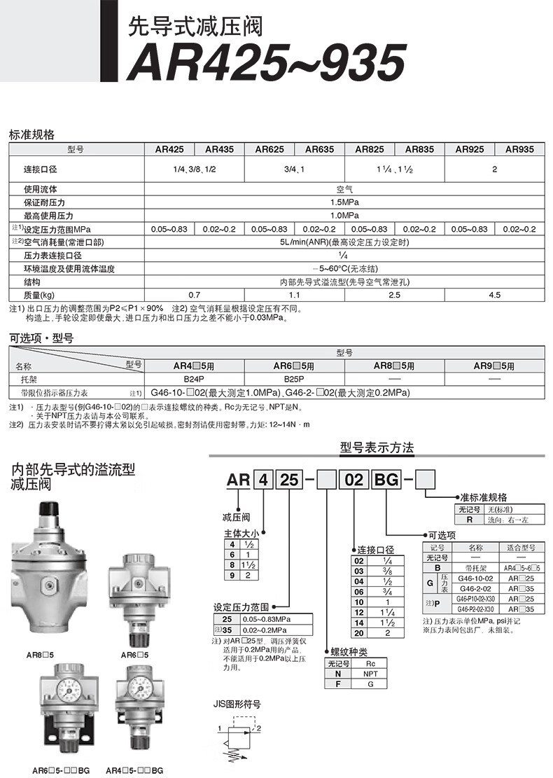 SMC AR625系列内部先导式减压阀 AR625-10G 1个