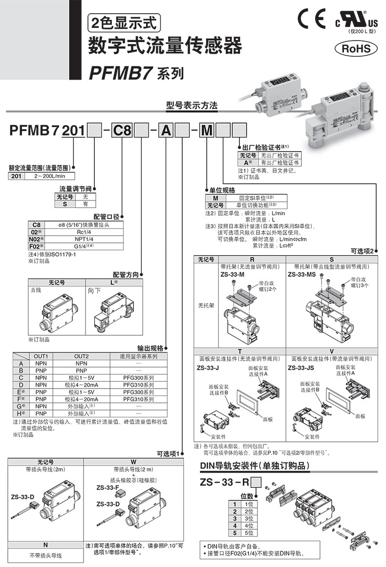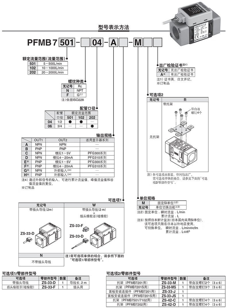 SMC PFMB7系列2色显示式 数字式流量开关 PFMB7102-04-F 1个