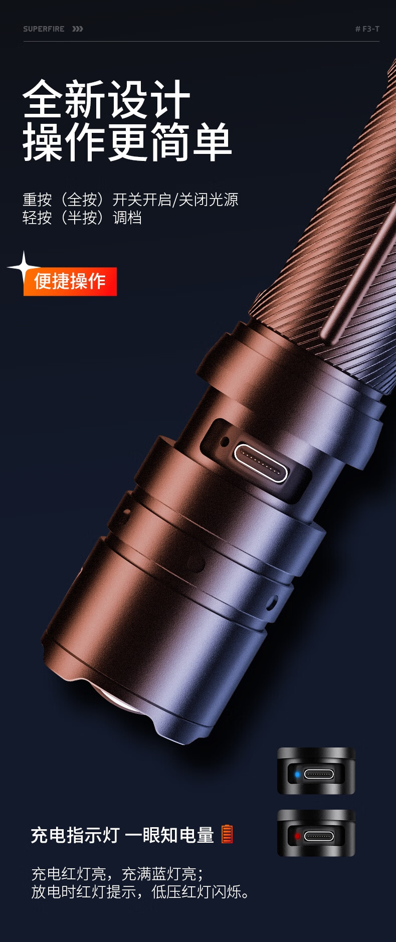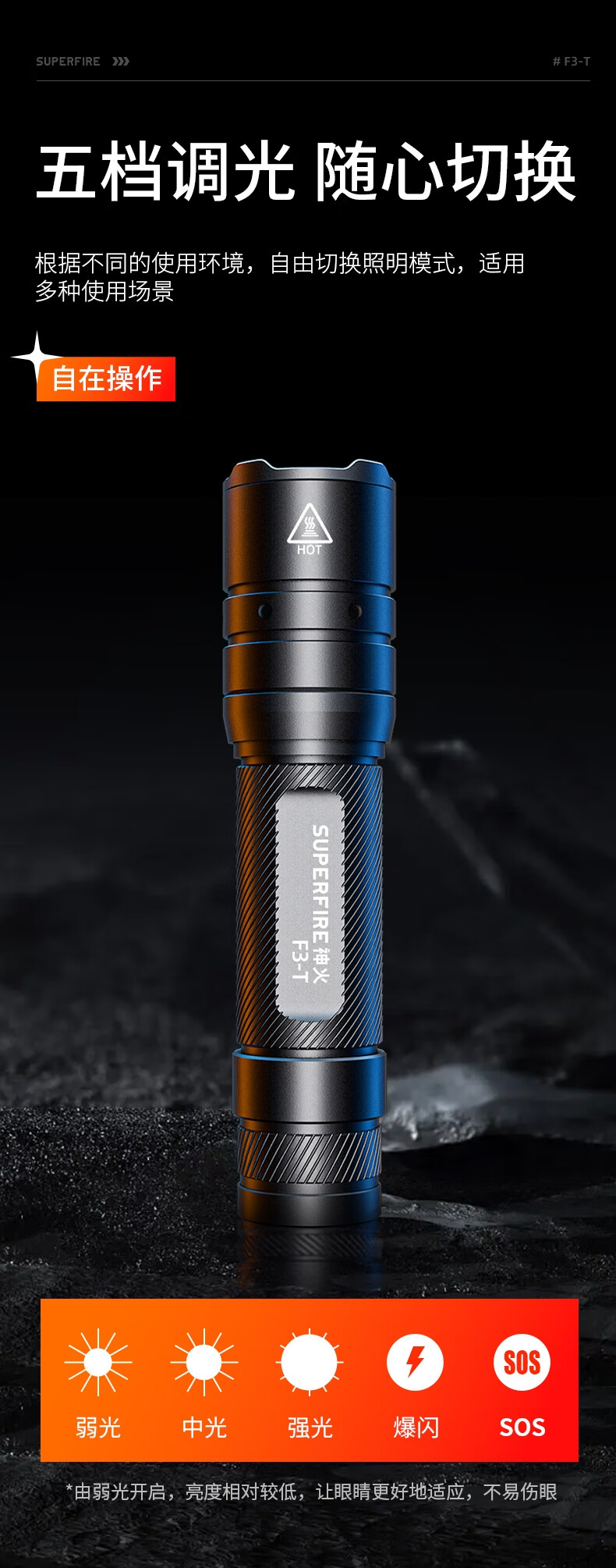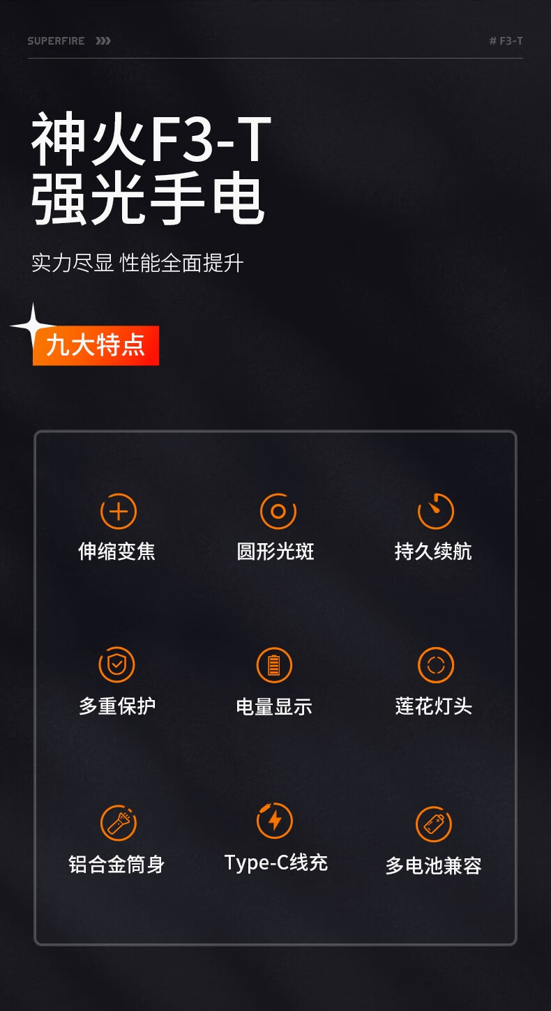 神火 强光战术手电 F3-T 15W 33*28*140mm 1个