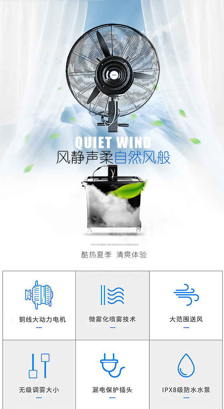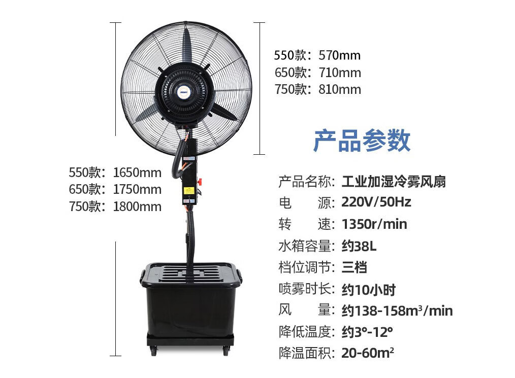 海斯迪克 应急防暑风扇 HKL-1087 喷雾风扇 550型(固定款) 1个