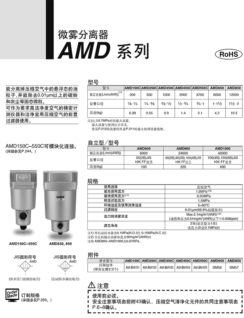 SMC AMD系列微雾分离器 AMD250C-03D 1个