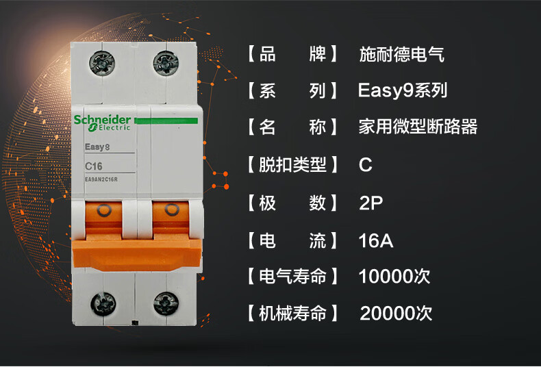 施耐德电气 微型断路器 EA9AN2C10R 2P 16A 1个