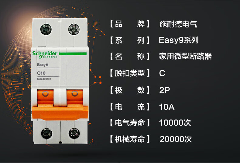 施耐德电气 微型断路器 EA9AN2C10R 2P 10A 1个