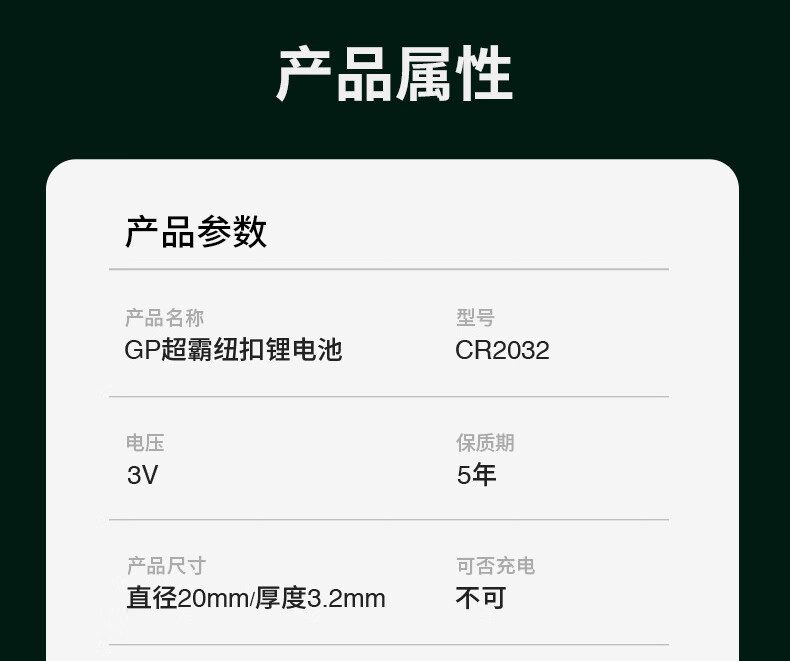 超霸 纽扣电池 CR2032 3V 5个 1卡