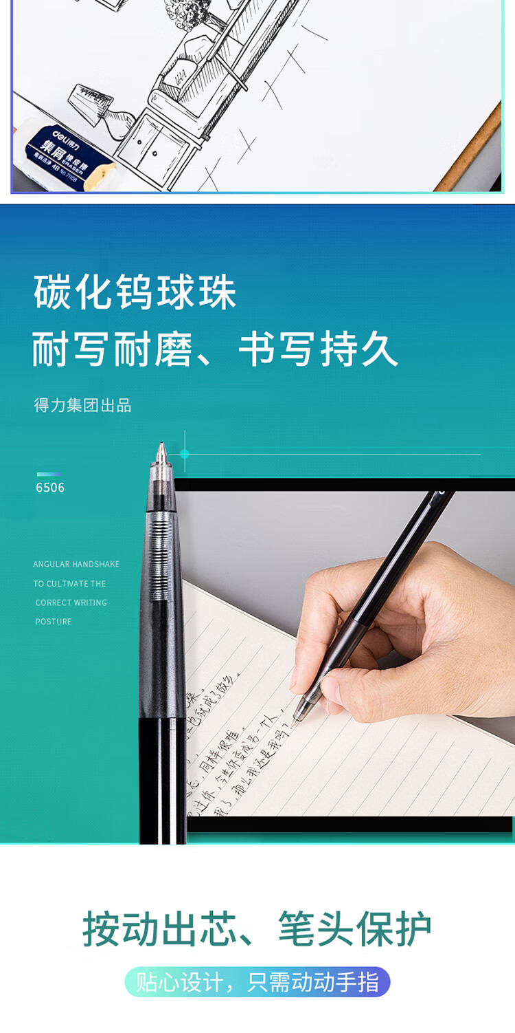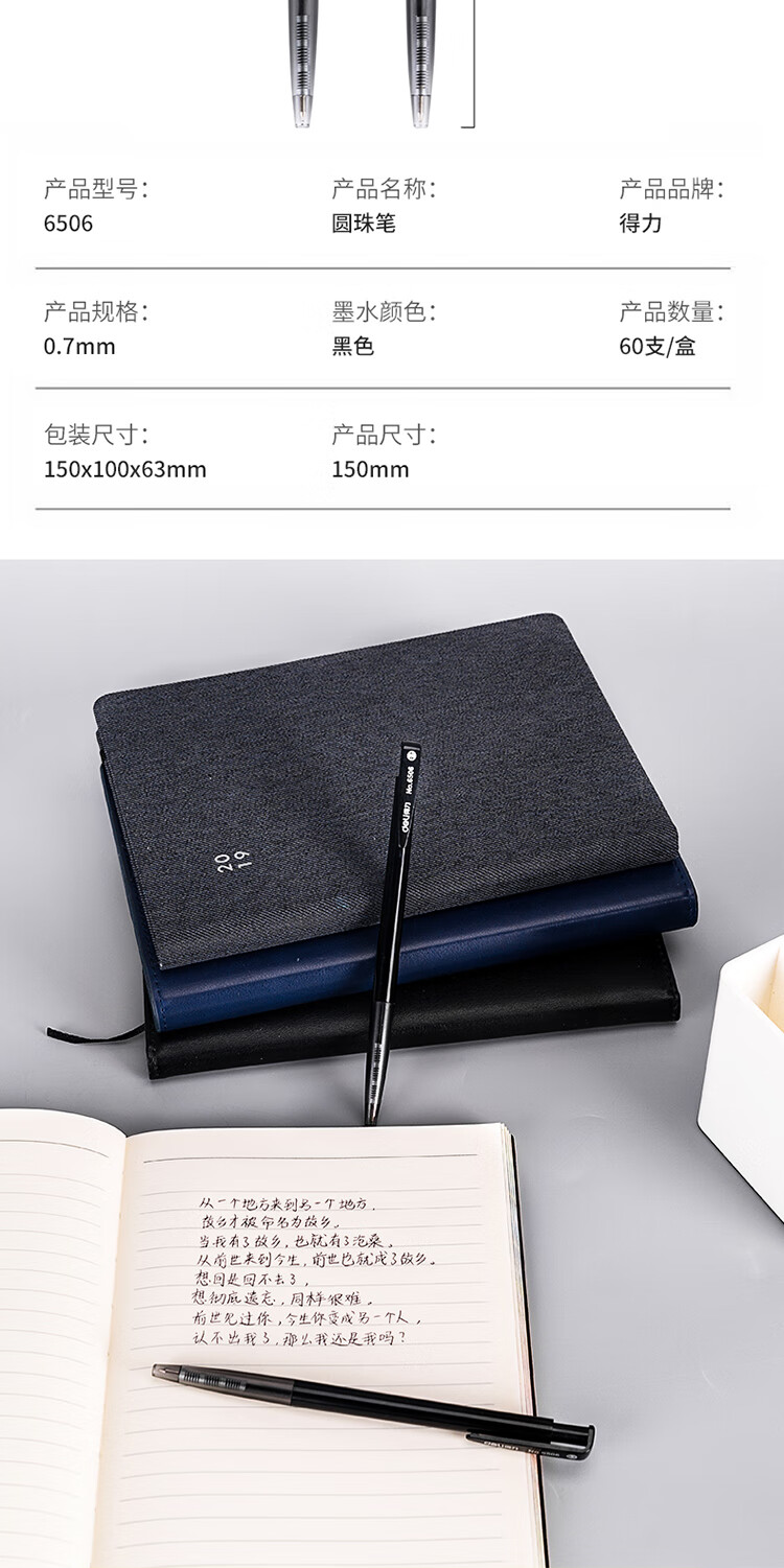 得力 子弹头圆珠笔 6505 黑色 0.7mm 1支