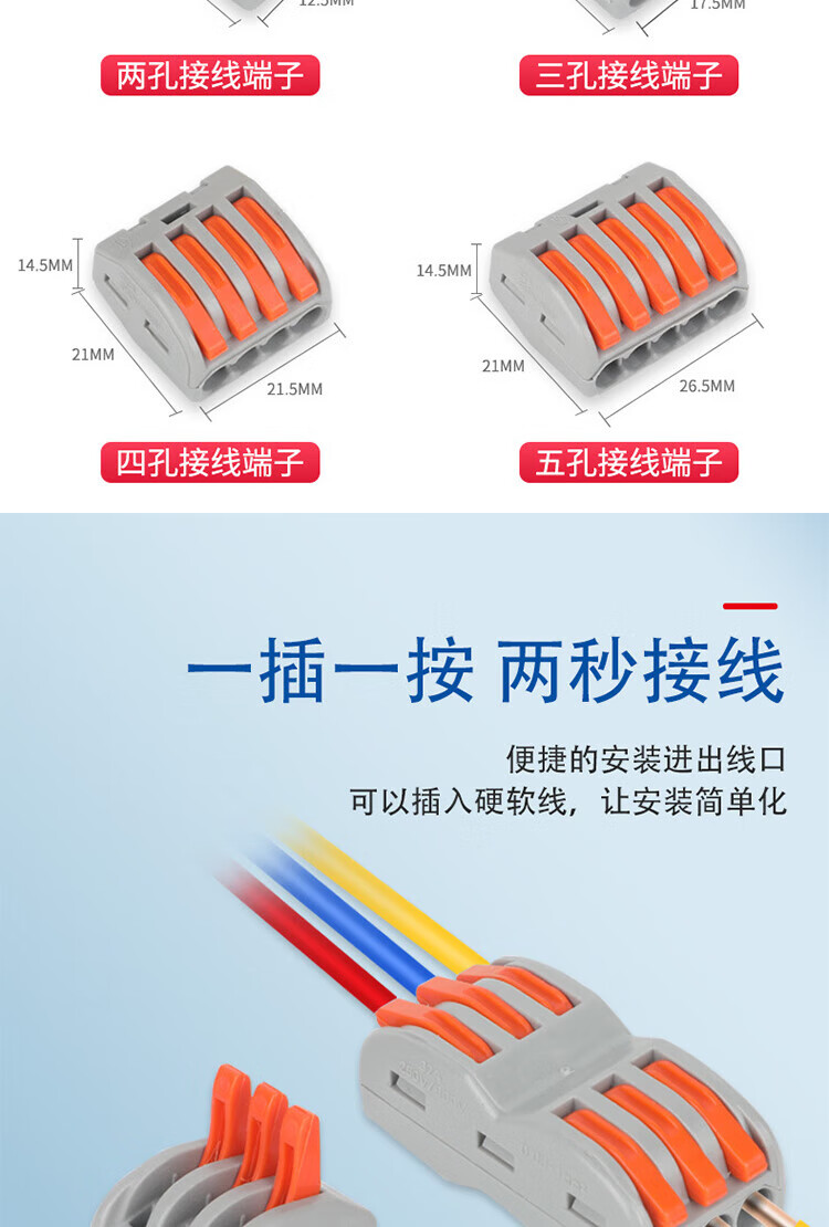 冰禹 按压快速接线端子 BJ317 4进4出SPL-224灰色 10只 1包