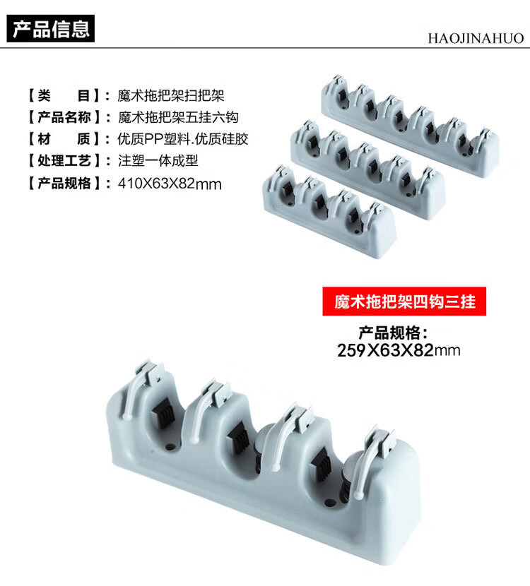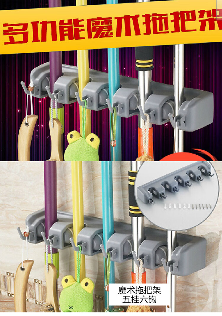 海斯迪克 拖把架挂钩架 gnjz-1233 5挂6钩增强款 1个