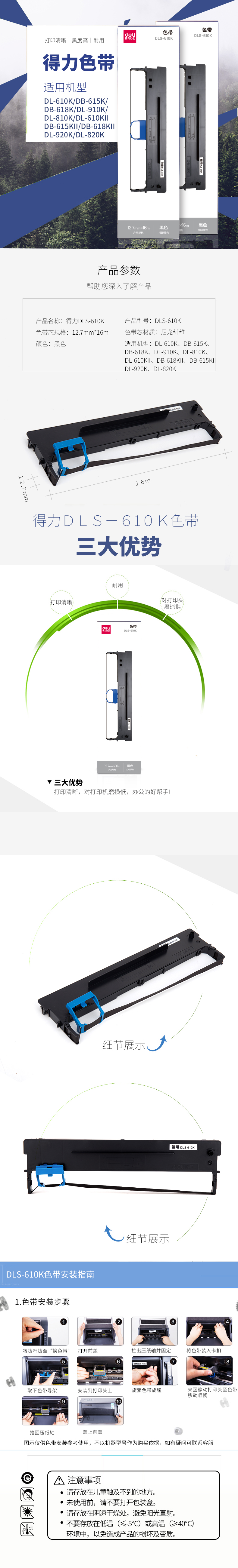 得力 色带 DLS-610K 黑色 12.7mm*16m 1盒