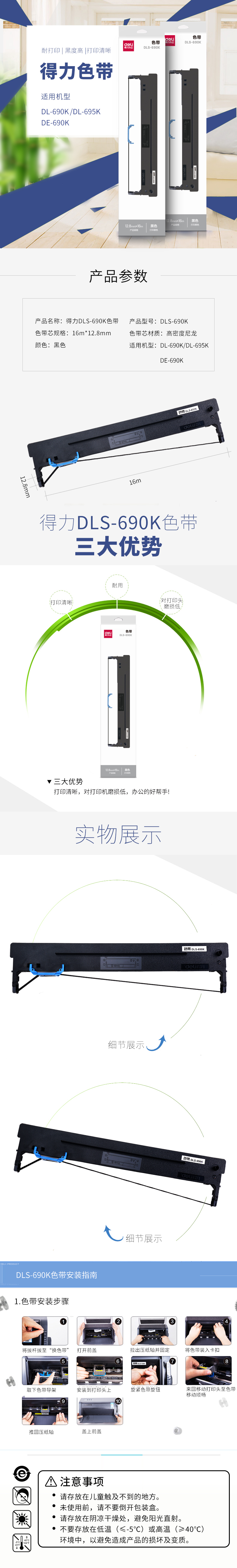 得力 色带 DLS-690K 黑色 12.8mm*16m 1盒