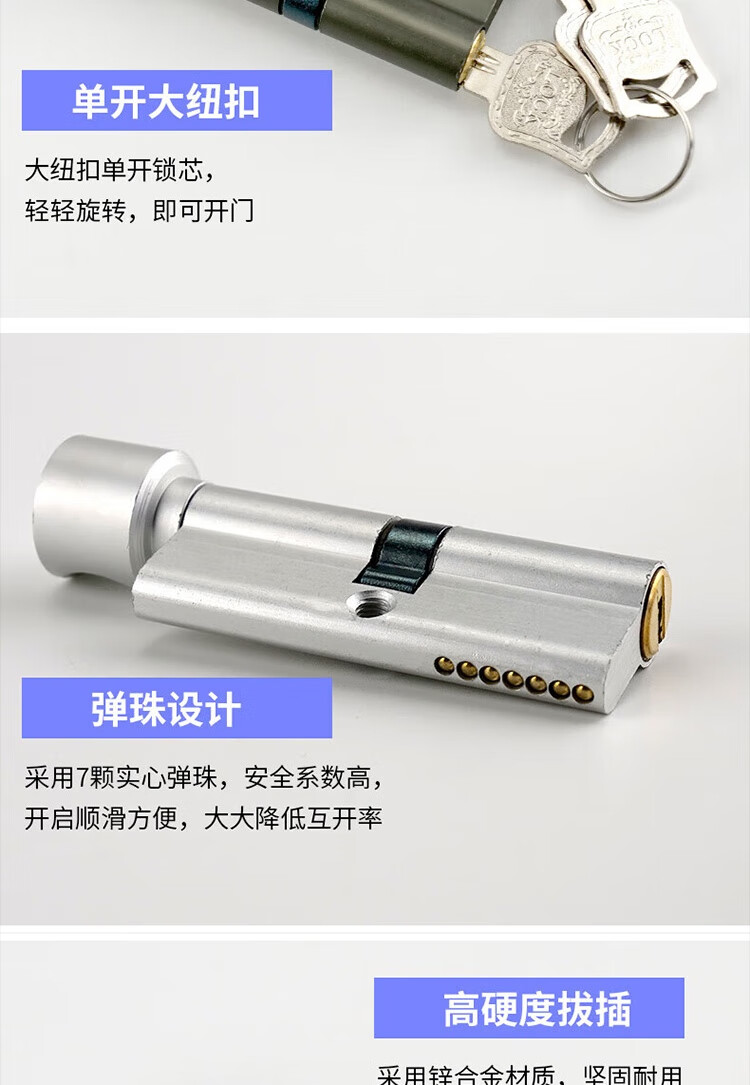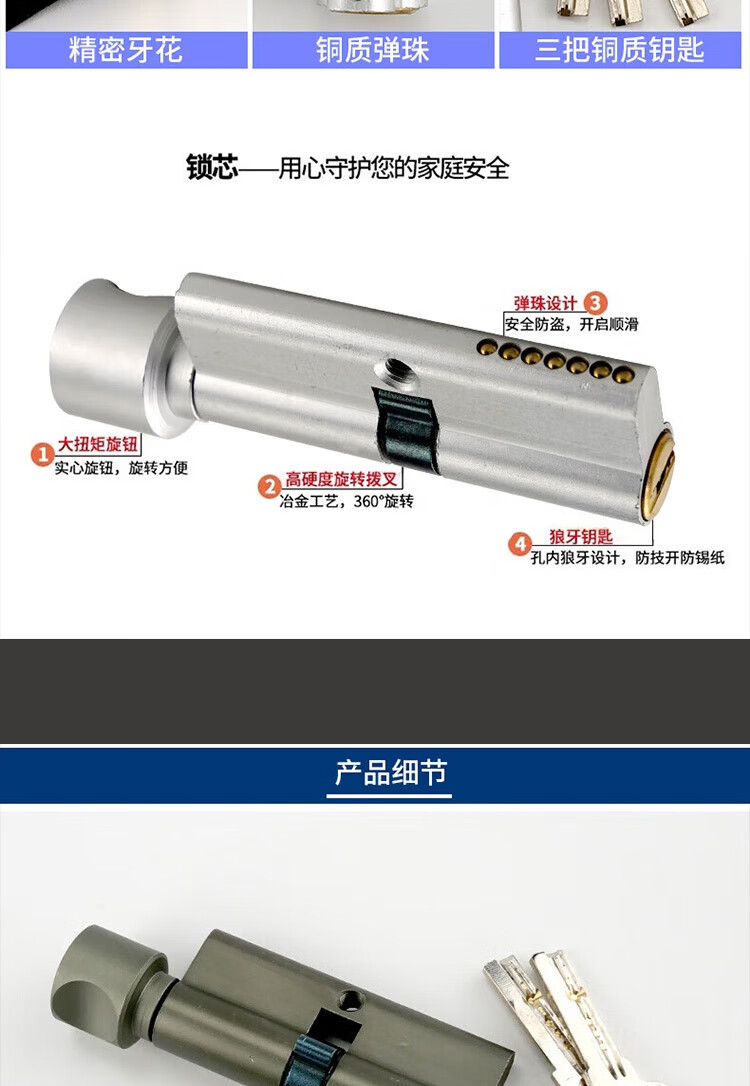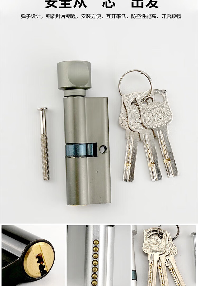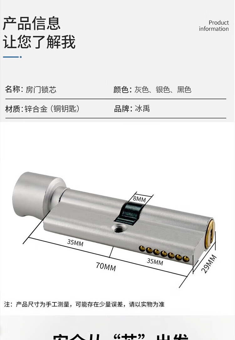 冰禹 房门锁芯 BJ472 铜钥匙 黑色 1个
