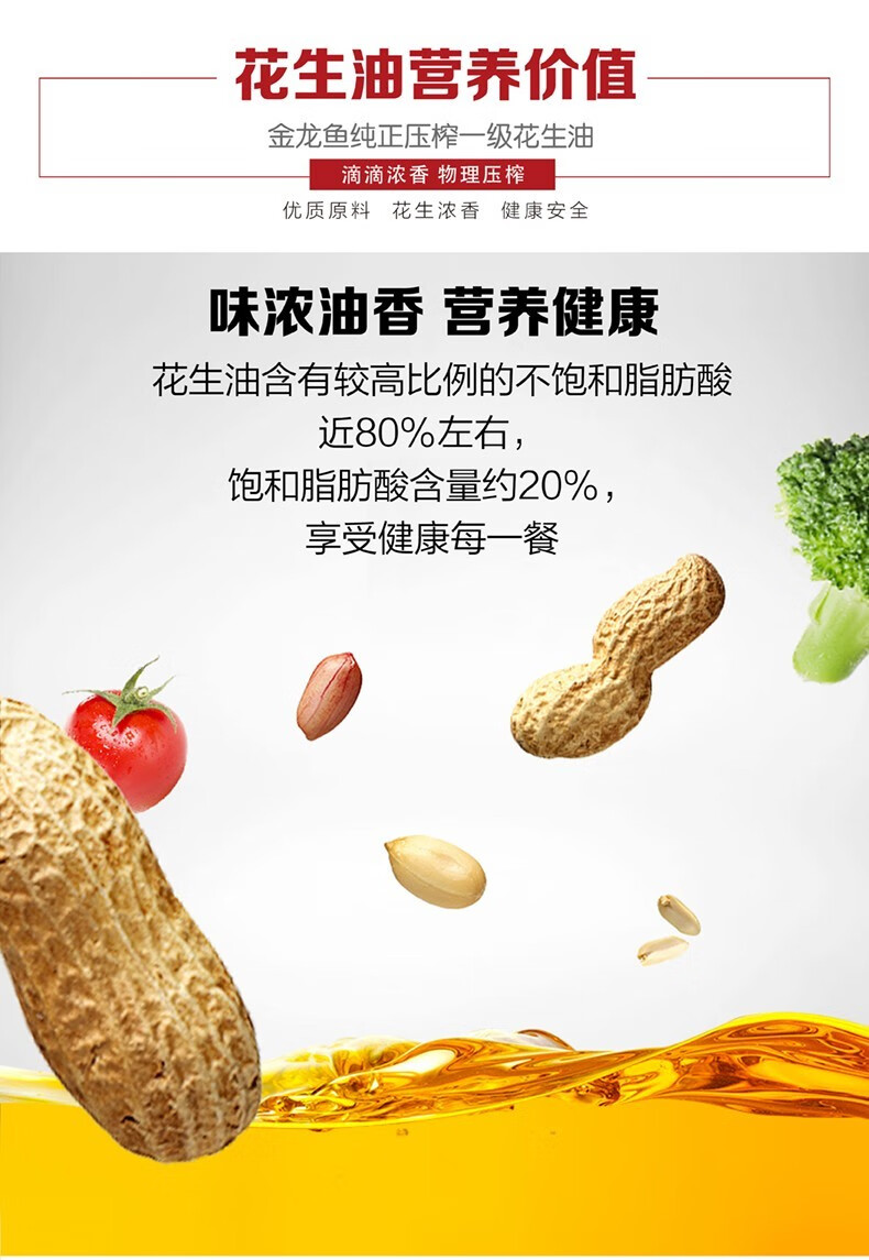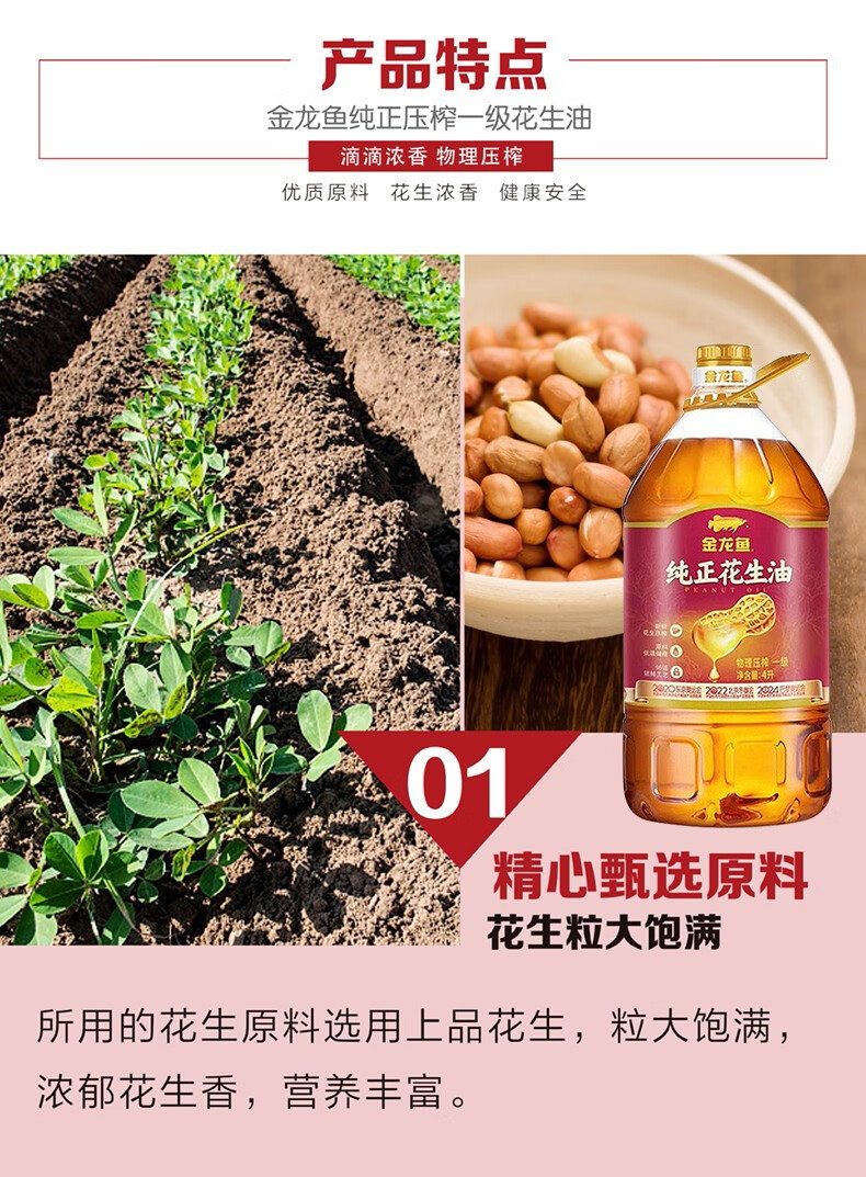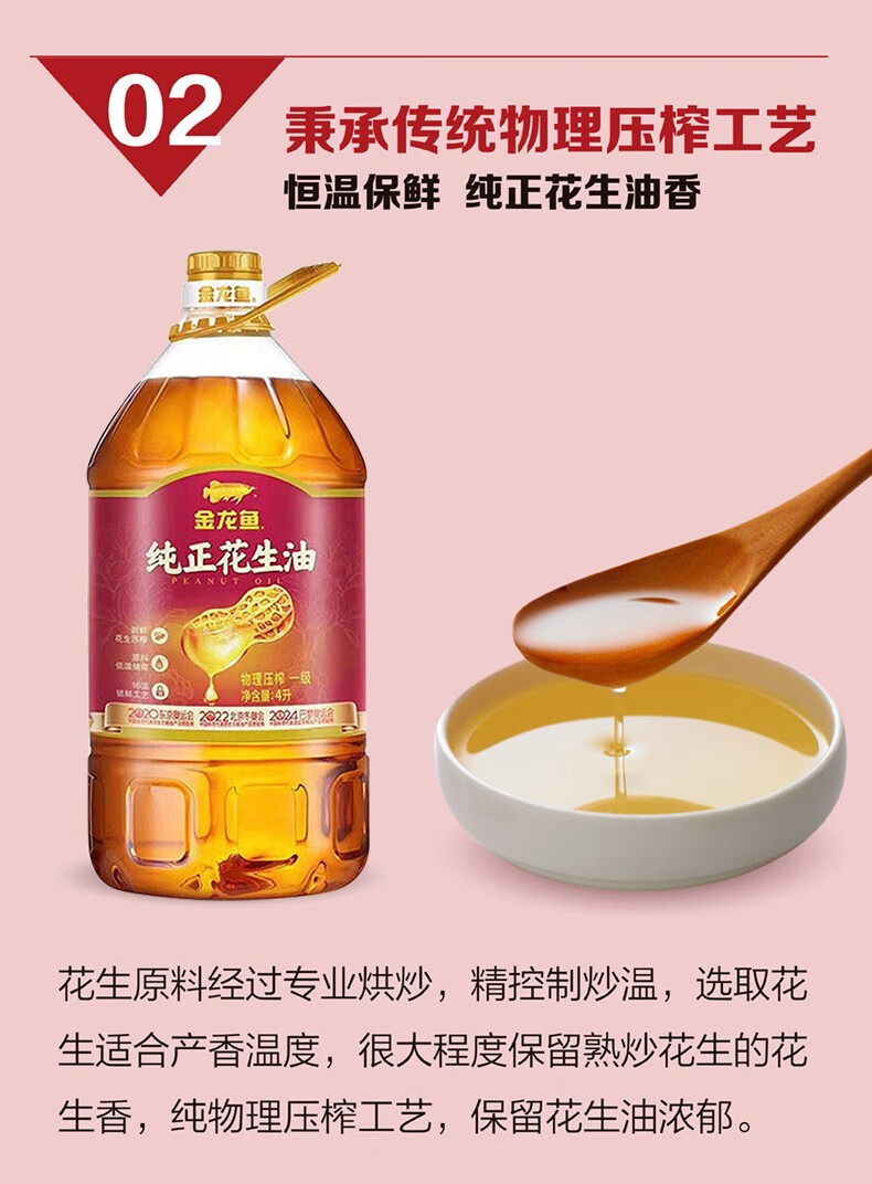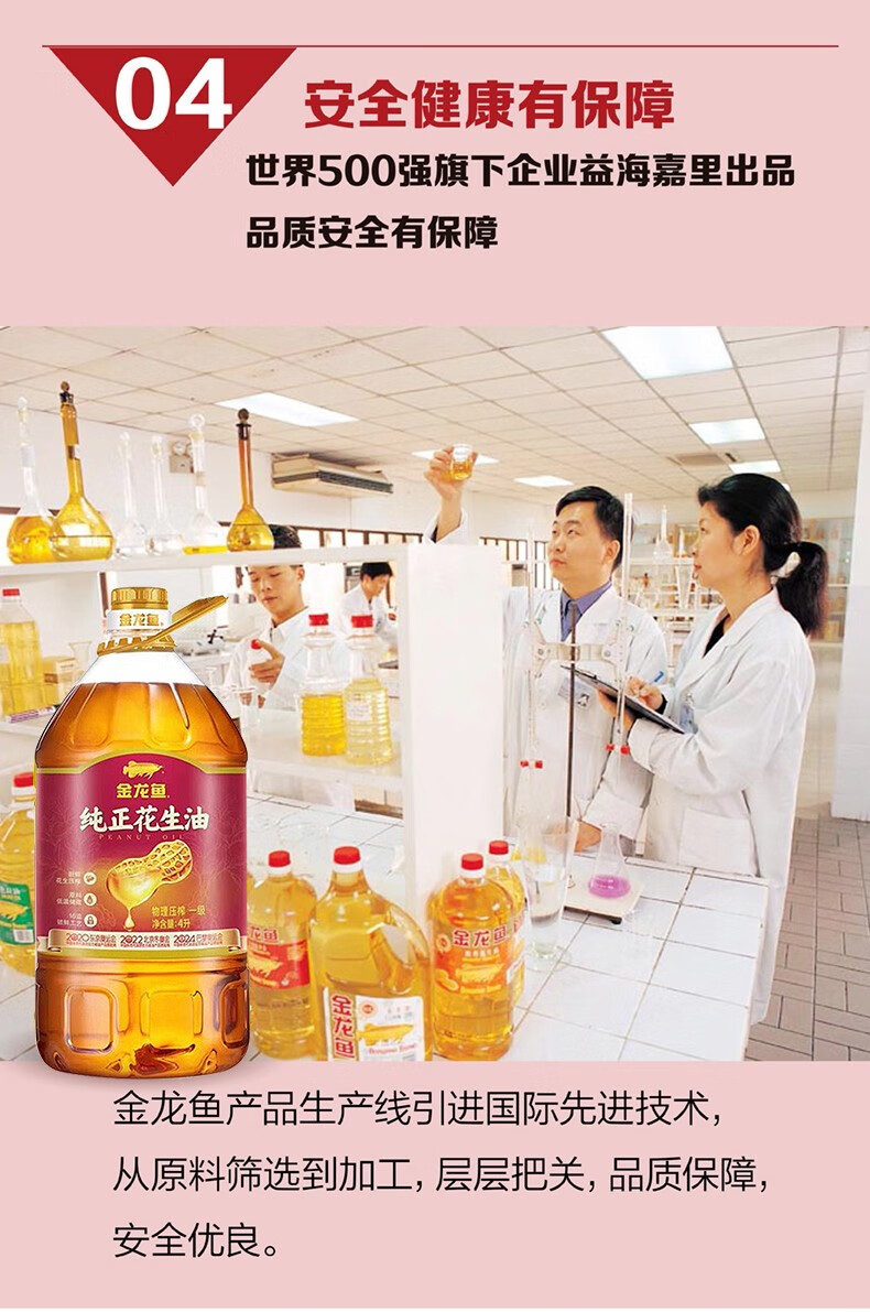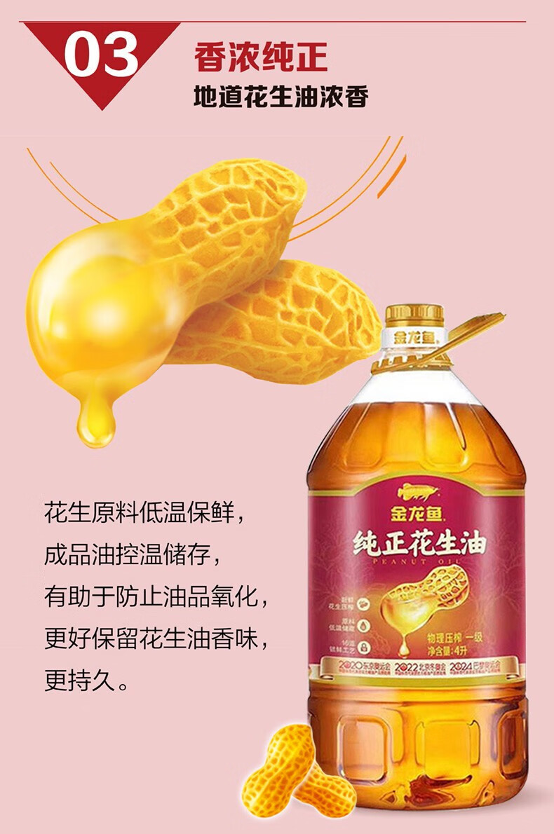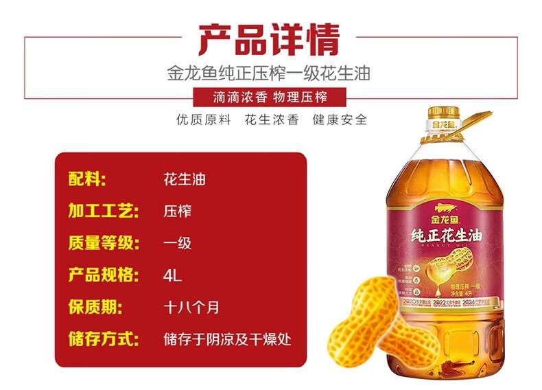 金龙鱼 纯正物理压榨一级花生油 4L 1桶