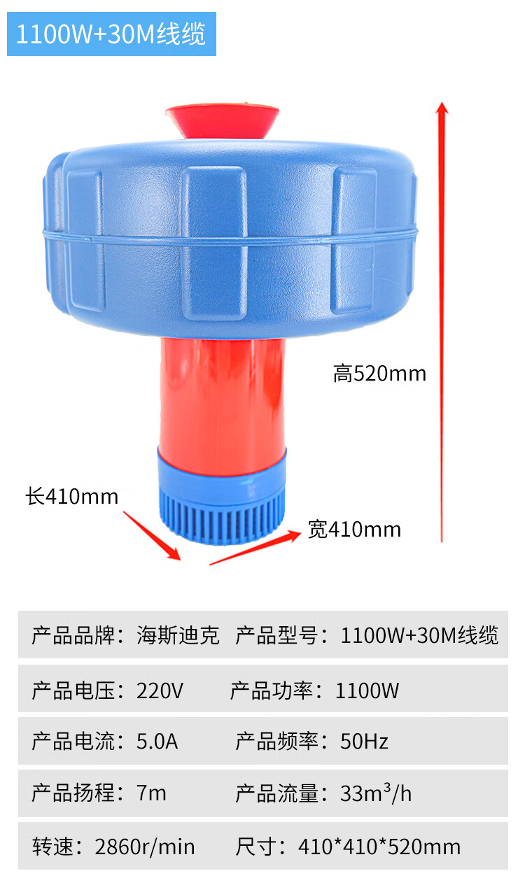 海斯迪克 大型鱼塘增氧机 gny-422 工程塑料 220V 750W+30M线缆 1套