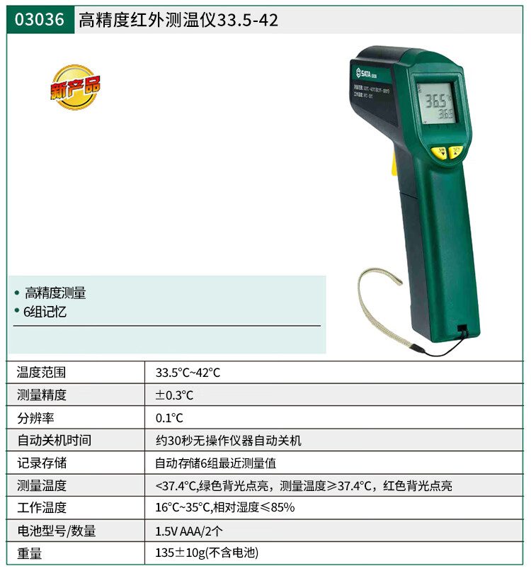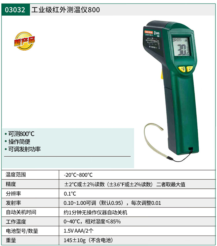 世达 手持式红外测温仪 03031 -38~520℃ 1个