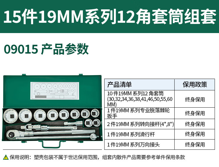 世达 19MM系列12角套筒组套 09015 15件 1套