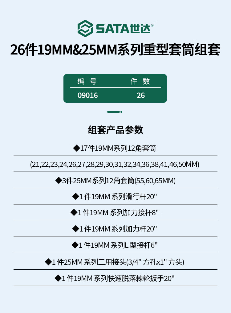 • 商品名称:世达 19x25MM系列重型套筒组套