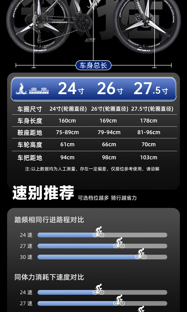 凤凰 山地自行车 黑白色 26寸 24速 辐条轮 1辆