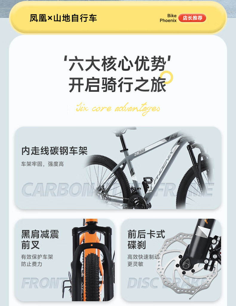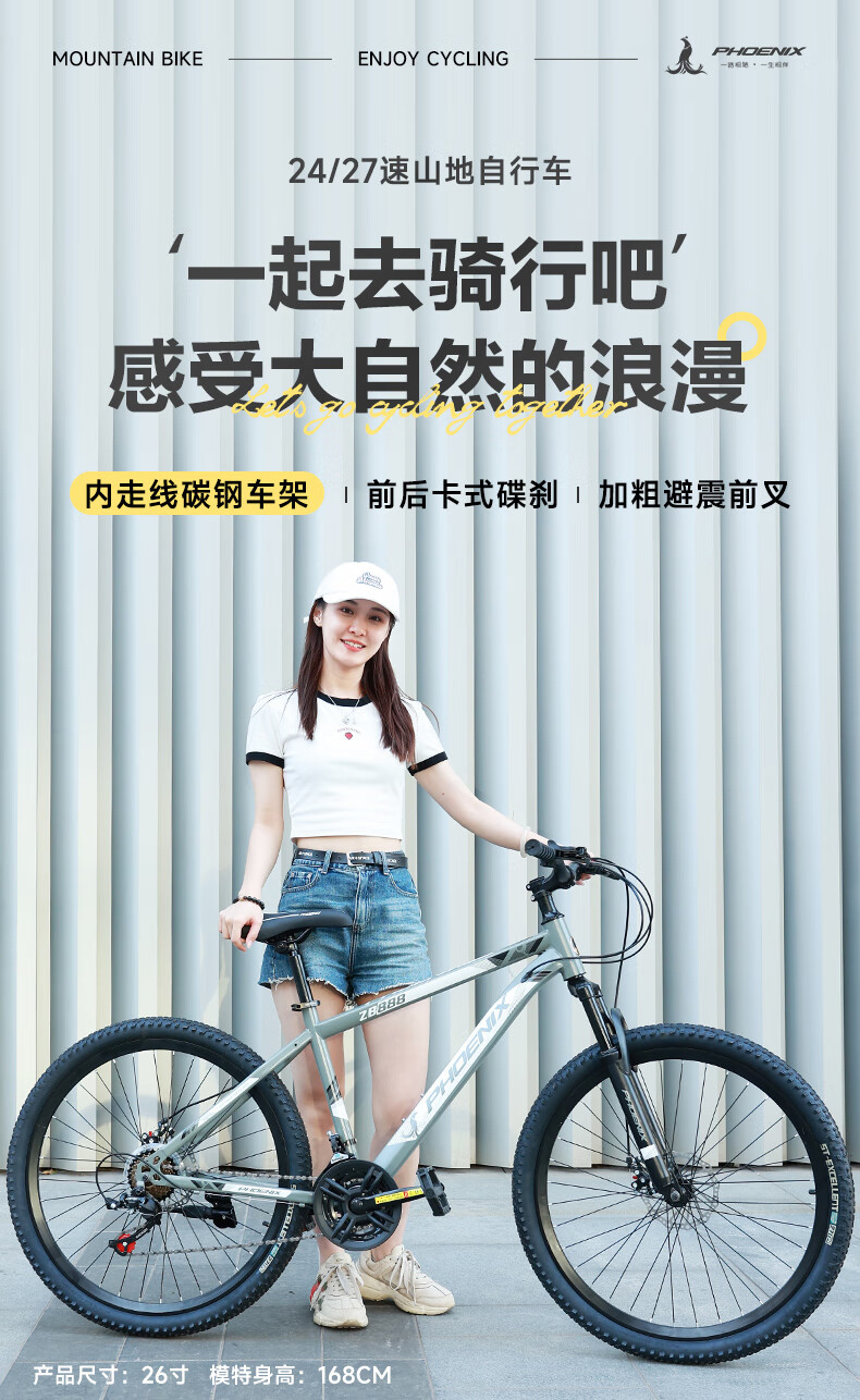 凤凰 山地自行车 ZB888 蓝色 26寸 24速 辐条轮 1辆