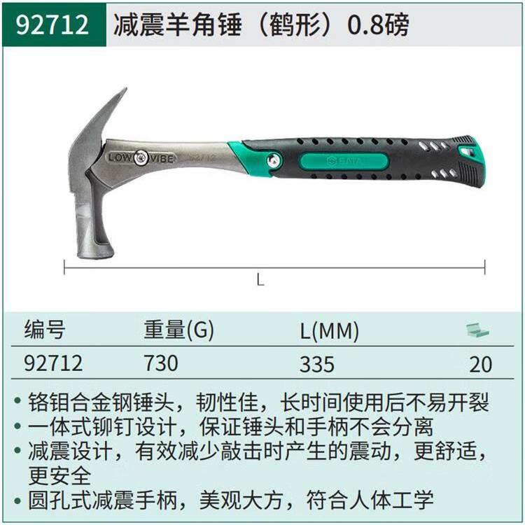 世达 减震羊角锤 92712 鹤型 0.8磅 1把