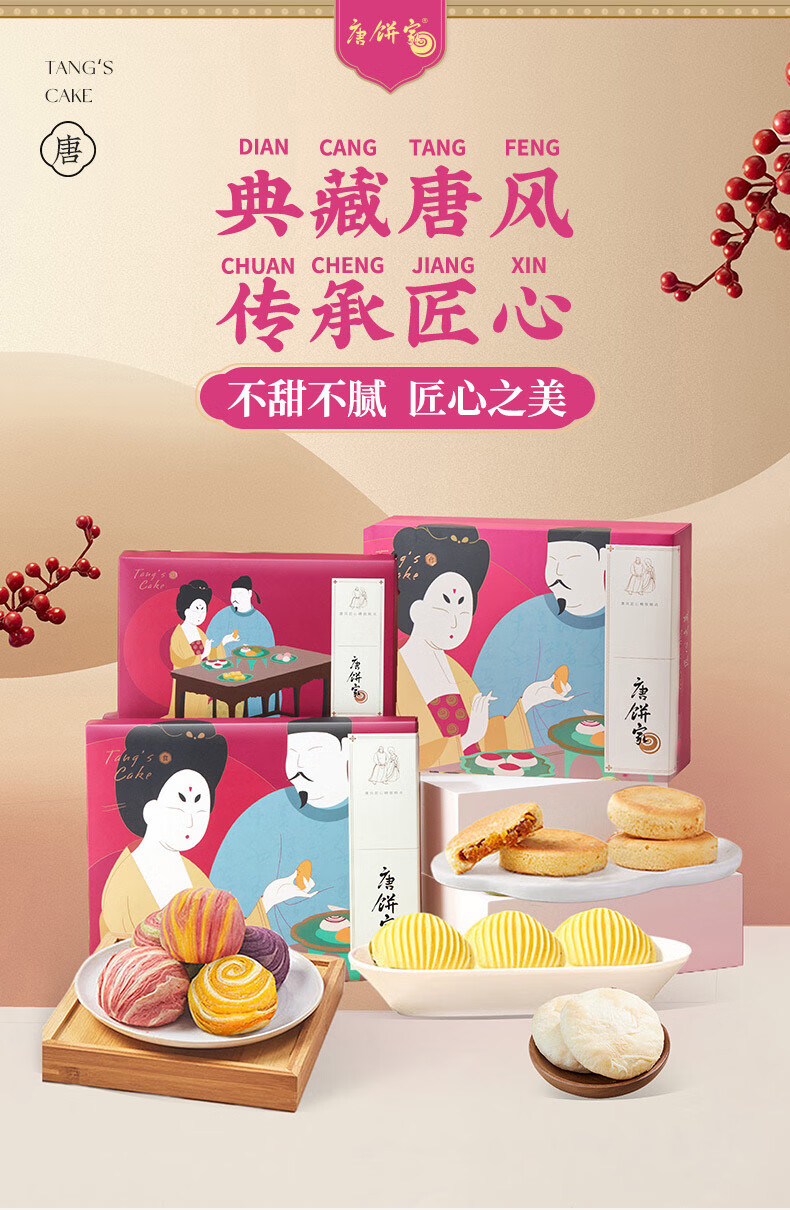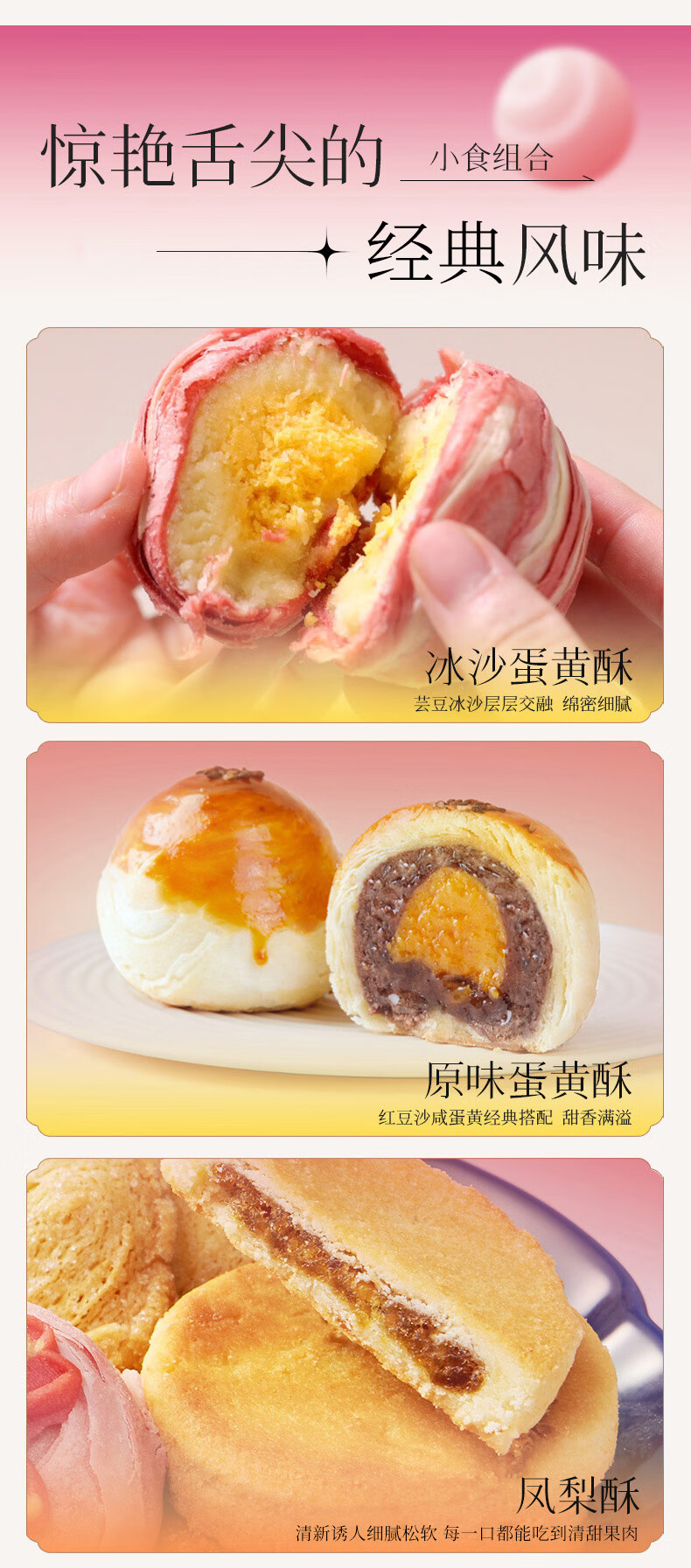 唐饼家 纷享装蛋黄酥礼盒 原味蛋黄酥60g*2+冰沙蛋黄酥60g*2+红豆芝士酥60g*2+奶油椰丝酥60g*2 1盒