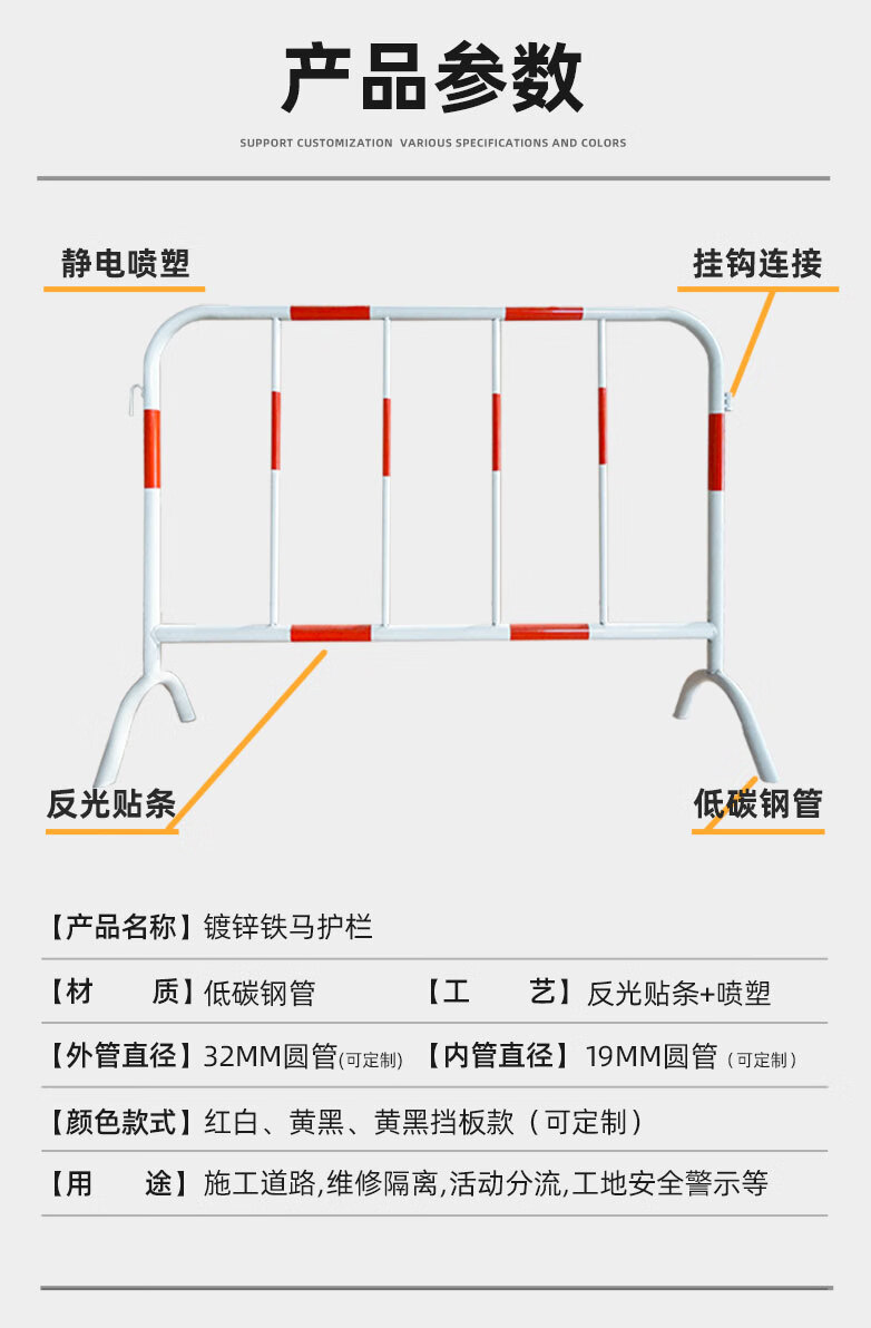 海斯迪克 铁马护栏 hsxy046 镀锌铁 1.2*2米 0.6厚度 黄黑 1件